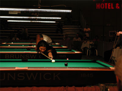 hat a long day of watching pool! As I mentioned before, Jeanette was in the losers bracket, and ended up having to play four (not three) matches to stay alive, starting at 3pm. She won her first three matches, but lost to Allison Fisher at around midnight. LONG day. Here are some pics from today: