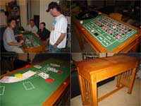 I gotta say, dealing craps is super, dooper fun. I won't be able to deal roulette for a while because I don't have enough different colored chips for more than like... 3 players, and it's a little cramped for blackjack, but the craps is definitely, definitely fun to play. Click on the pic below for a bigger pic.