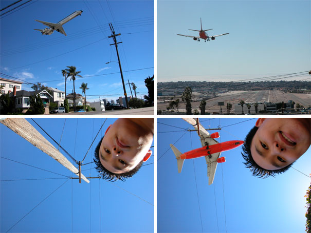 Anyway. Unlike most cities that put their airports far away from anywhere you would actually want to be, San Diego's airport is right next to downtown. And all the planes that land there skim over Banker's Hill on their way down to land... and they are pretty freakin' low when they go by this hill. So I thought, hey, wouldn't it be fun to be right under the planes?