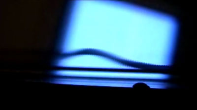 came across weird phenomenon on accident.. an open E played on a guitar in front of a computer monitor operating at an 85Hz refresh rate allows you to "see" the vibration of the string as a perfect sine wave. Of course, upon seeing this phenomenon I had a great urge to share it with other people, so I made a little video. Click on the image below to see the video (it is a 900KB quicktime movie). I also noticed that a refresh rate of 72Hz works pretty well for the D string.