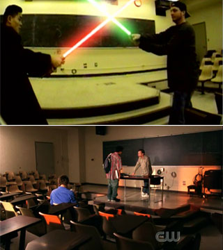 And now on to a different subject... a couple of weeks ago I was watching Veronica Mars and noticed that one of the scenes took place in the exact same lecture hall at UCSD where I had shot my light saber video Return of the BryBry some 8 or 9 years ago!!