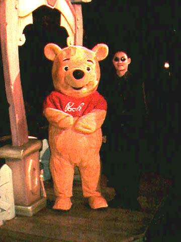 You know, kids say the darndest things. While we were waiting in line to get our picture taken with Pooh bear, behind us there seemed to be a Tigger... with no line... so a bunch of kids ran over there... only to discover that it was just some kid who came to Disneyland dressed up as Tigger on Halloween. When the kids returned to the parents (who waited patiently in line for them), they said "awww, it wasn't really Tigger, it was just a costume..." -- as opposed to the Winnie The Pooh we were about to get our picture taken with, who is in actuality a 6 foot tall yellow bear with a red shirt on and not a guy in a costume.