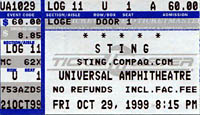 First of all.. Sting is a fuckin' sellout. His website is http://sting.compaq.com and before the show, a gigantic Compaq logo was shining on the stage. That being said, Sting is one of the greatest performers in the world. One of the reasons why he is so great is because he fills his set with a lot of old songs. But instead of playing a bunch of his new songs and then getting into his old songs, he mixes them up well.