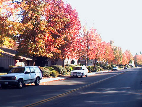 So like uh yeah, that was the excitement. Then I went to school. Came back. Redid the flash work that I lost in the outtage last night. I went out with my digital camera and took pictures of the leaves turning color around the corner from my house. It's not that impressive. But these are probably the only leaves that turn color in all of San Diego. Anyway, I didn't move to San Diego to see leaves change color. I came here to stay away from the places that have snow (which is mostly the same places where the leaves change color).