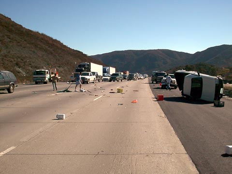 Other people did not fare as well, however. One of the pickup trucks that was involved in the accident rolled over onto its side. It was full of junk in the bed, and I remember seeing it flip over, almost in slow motion. It was like something out of a movie. If you click on the image to the right you will see what it was like. Lawrence's car is not pictured here.