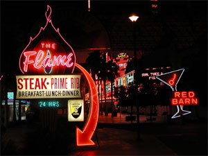 Finally, I'll talk about the photos below. I haven't been to Hawaii since I was like 12 years old, so I don't remember much about it, but I keep hearing everybody talk about ABC stores and how they are all over Hawaii. Well, now there is one in Downtown Las Vegas, in the old Pioneer Club building... It was kind of weird as it was a Hawaiian themed store selling mostly a mix of cheesy Hawaii and Las Vegas souveniers. A combination that perhaps only the Hawaiians staying at the Cal can fully appreciate. The other is of a couple of signs that you can find near Freemont Street that have been resurrected from historical Vegas locations. Pretty cool.