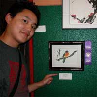 Back to the fair... as you know, many county and state fairs have all kinds of competitions, and they hand out ribbons and stuff for the winners. Well, it just so happens that cyn entered in one of her brush paintings, and it won an "honorable mention" ribbon! Cami knew this already, so we actually set out to find it, and we even had a little contest saying that whoever spotted it would get to take a picture with it. Well, that person was me!