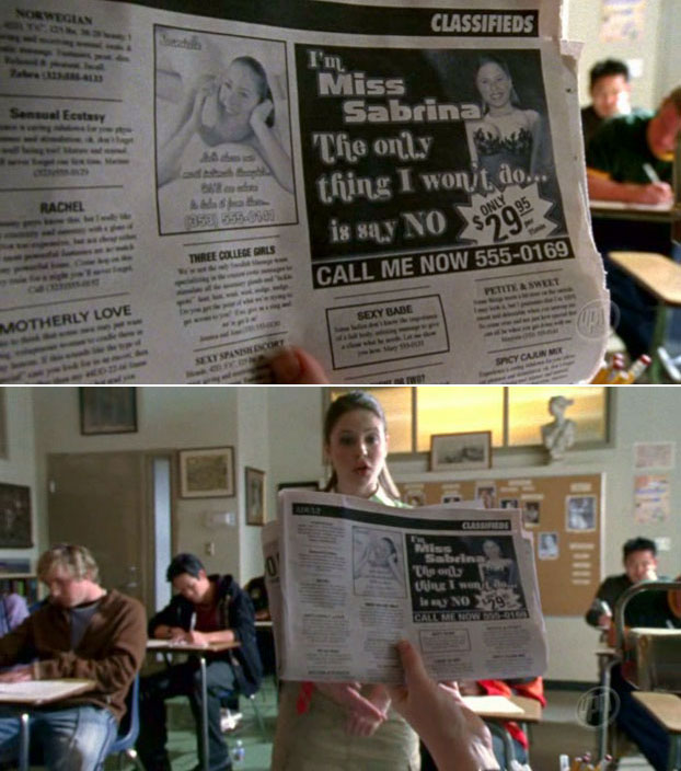 Don't forget to dune in next Tuesday at 9PM for the next new episode of Veronica Mars!! It's gonna guest star Jonathan Taylor Thomas and Joey Lauren Adams, and I'm gonna be walking around in the background too! Check it out! And now on a completely different topic....