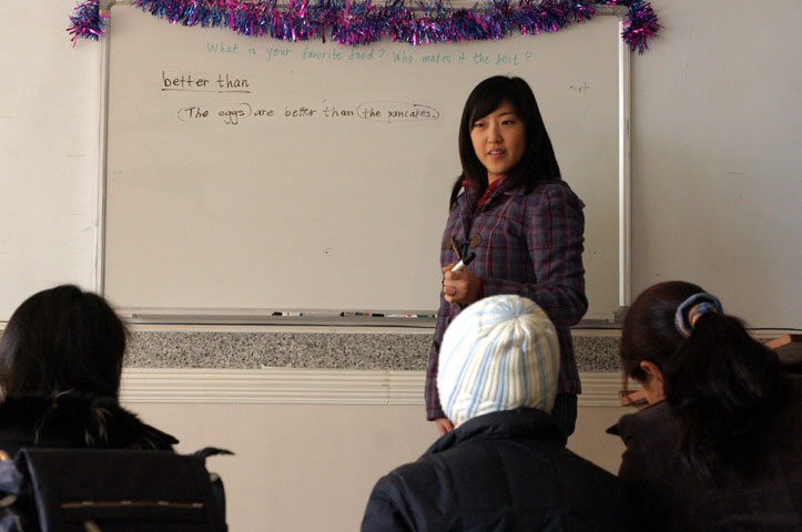 This is Angela. She took a semester off from Johns Hopkins to come here to teach English for three months.